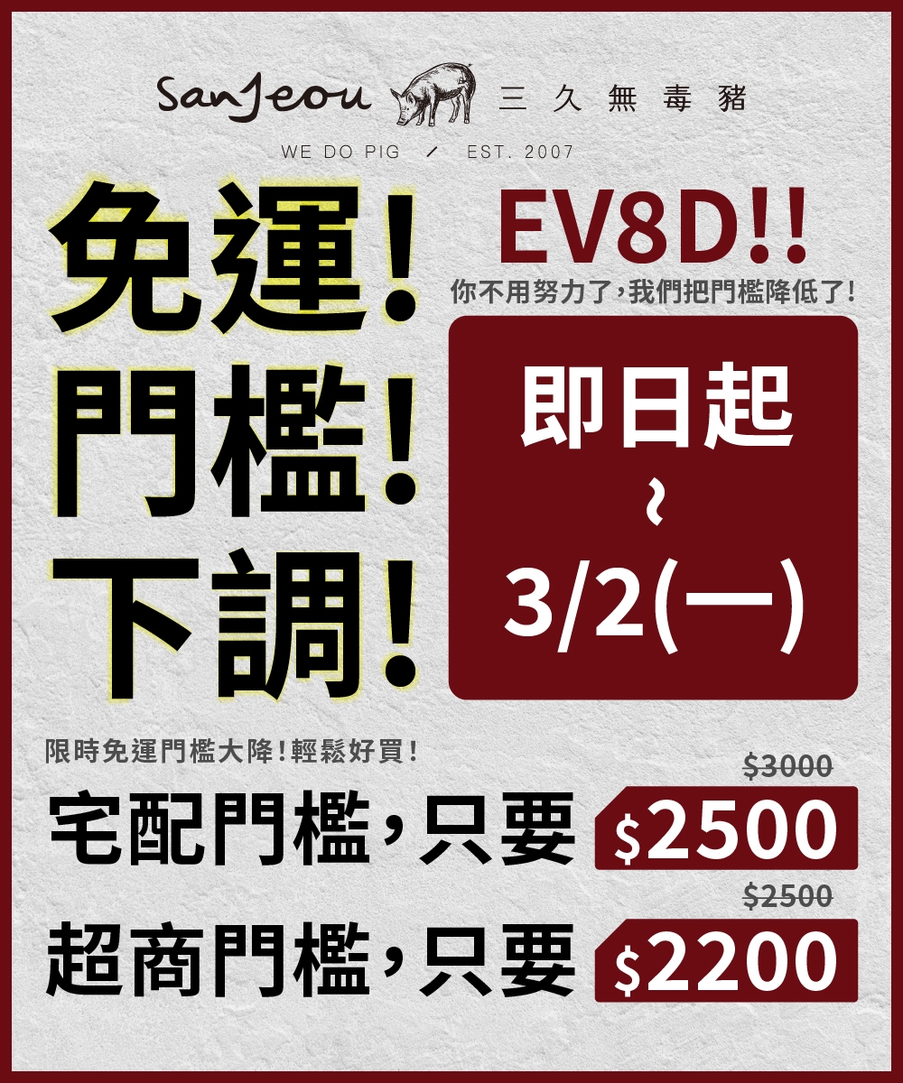 秉持人道飼養,每間群養舍約160平方公尺(50坪)的寬敞空間,給予每隻豬4平方公尺的飼養面積,遠遠高於規範的1.64平方公尺!