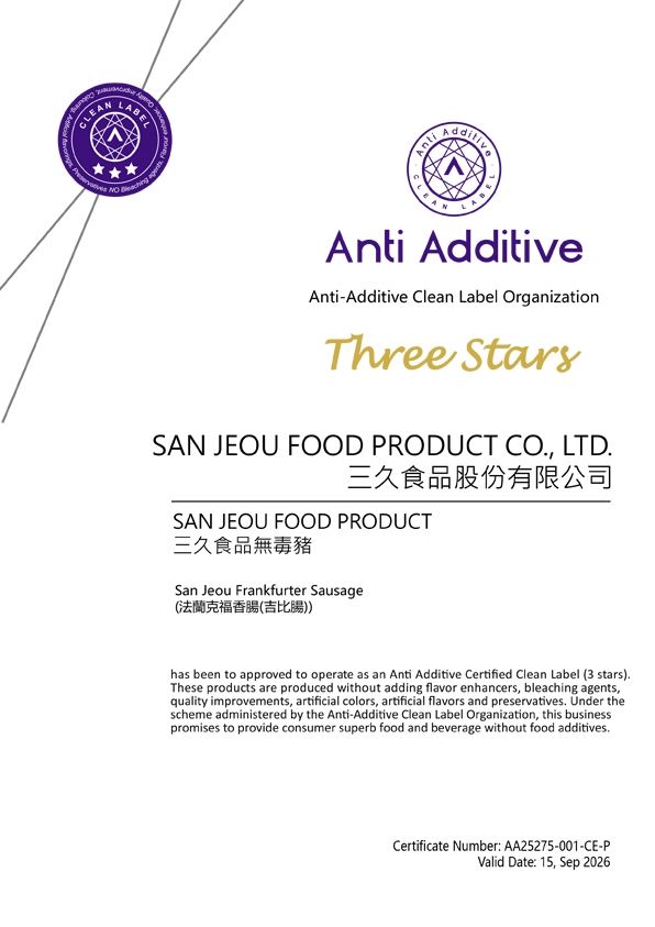 法蘭克福香腸(吉比腸)- A.A.無添加三星認證