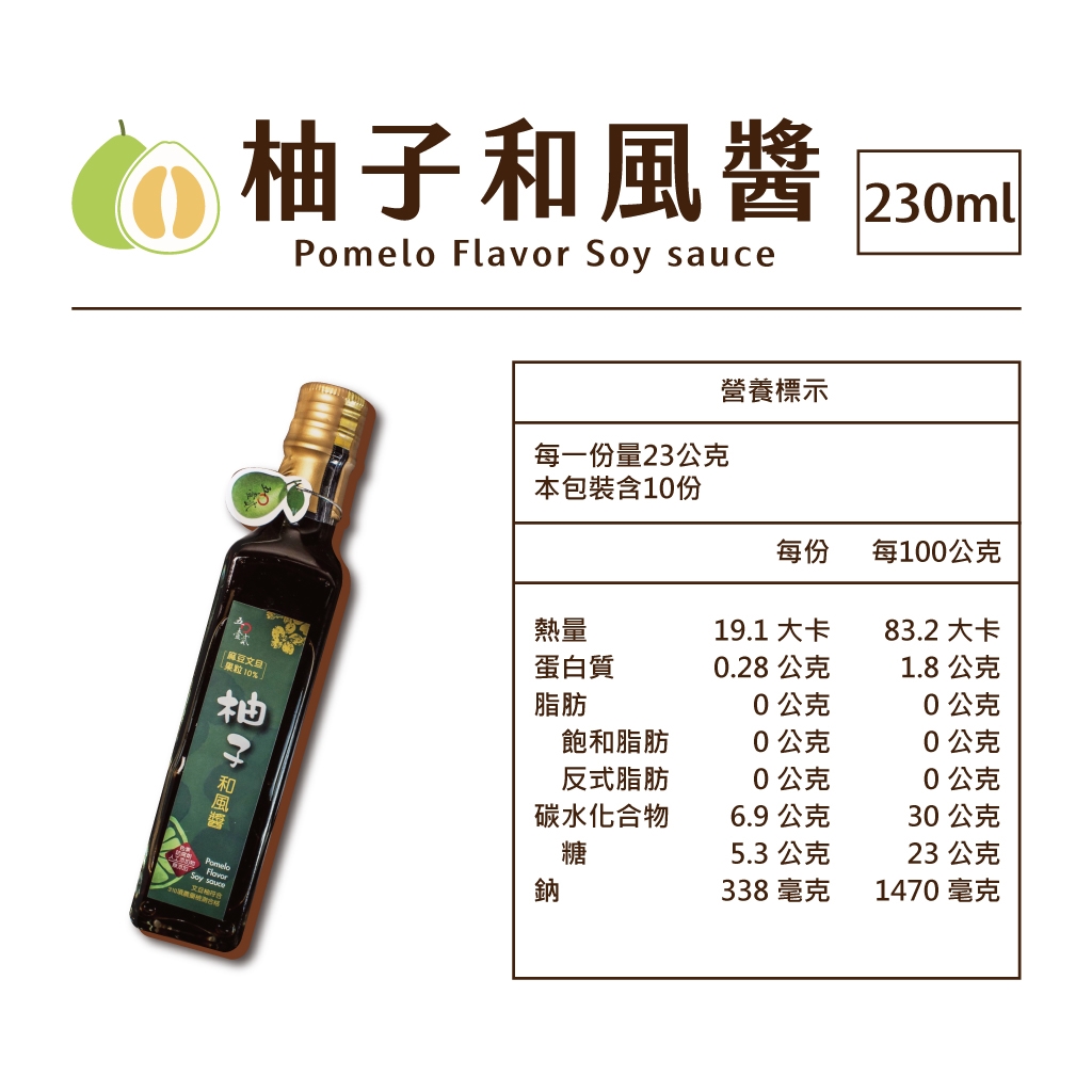 ◆ 常溫商品,與冷凍商品分開寄送,運費另計 ◆ 無添加色素、香料、防腐劑 ◆ 來自台灣百大黃金青農草生栽種柚子 ◆ 擁有產銷履歷及農產追朔的雙重認證 ◆ 純釀造的醬油甘甜,再加上文旦柚的特有香氣,是款非常清爽的沾醬 ◆ 涼拌菜餚、沙拉、或代替沙茶醬做火鍋沾醬都相當適合 ◆ 屬於易碎產品,請選擇【宅配】配送!