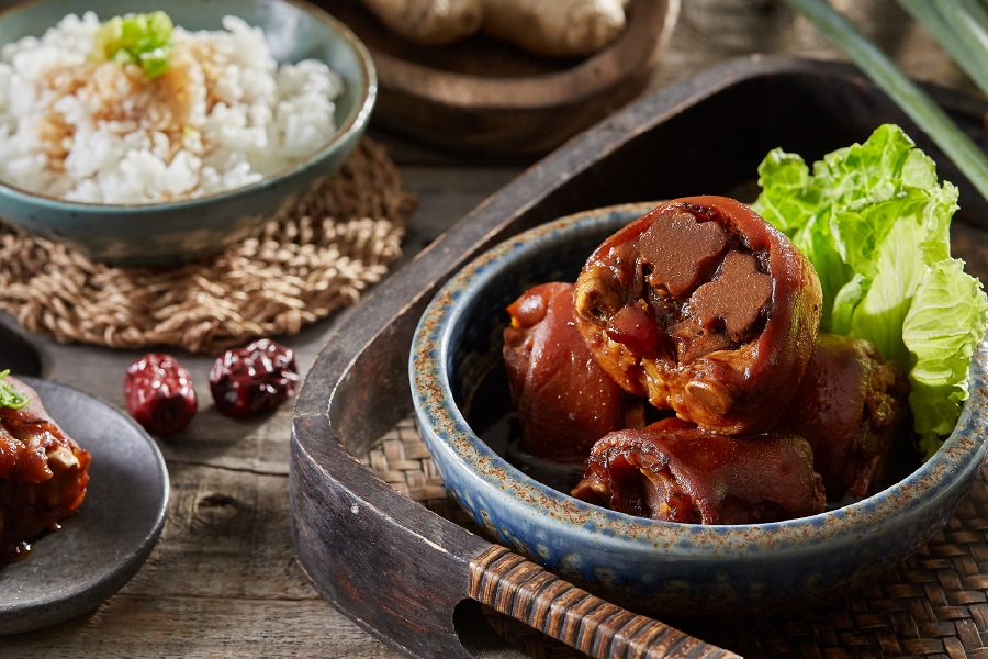 ◆獨門中藥配方製成,必嚐的獨特風味! ◆經兩小時慢火烹煮,搭配天然中藥配方、金門58高粱酒、紹興酒 ◆將醃漬液注入豬腳內部,讓它的酒香充分入味,再經過低溫冷藏醃漬長達72小時。
