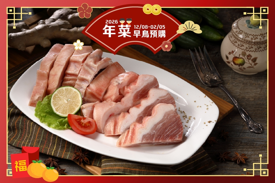 🐴2026金馬騰躍✨年菜預購 活動主頁👉https://pse.is/8fnr69 ◆組合內容: 五花肉薄片200gx2 梅花肉薄片200gx2 帶皮五花肉條600gx1 台式香腸(6條)x2 貢丸400gx1 安心水餃700gx1 滷豬腳/包x1 獅子頭750gx1 椒香鹹豬肉350gx1 滷蹄膀/個x1