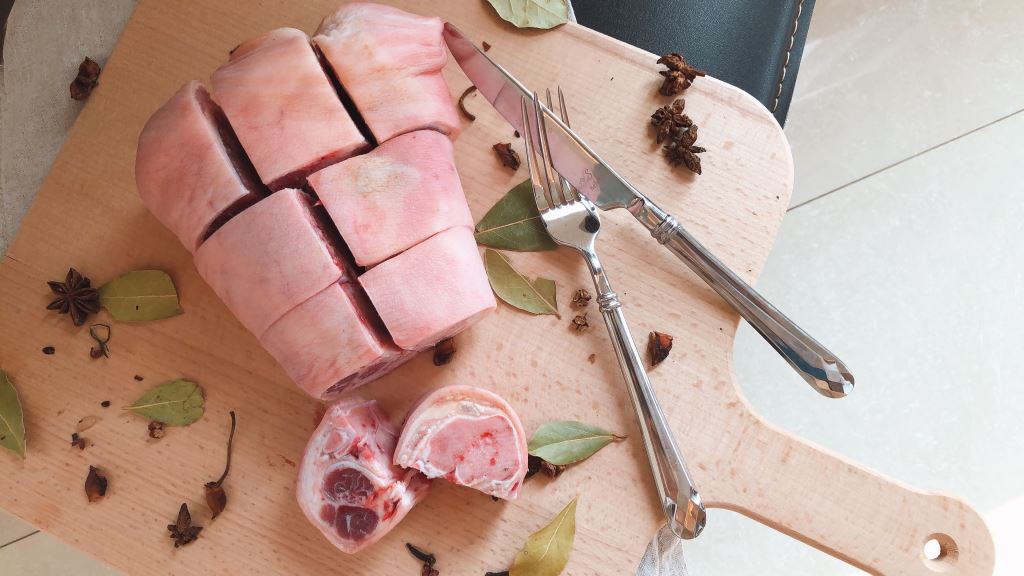 ◆位於豬後腿的蹄膀內的部位。 ◆一頭豬只能取出兩隻豬棒腿,所以豬棒腿是極少珍貴! ◆肉多帶骨、軟嫩Q彈,形狀似雞腿,因此我們命名它叫「豬棒腿」。