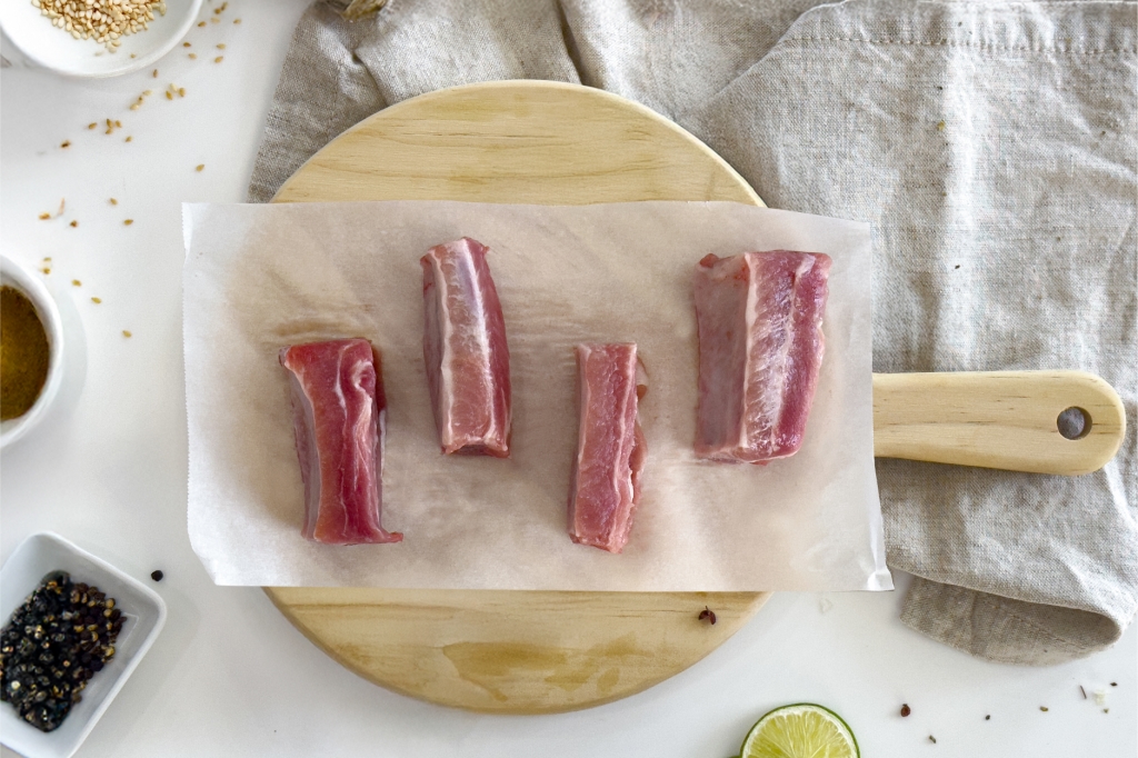 ◆位於豬的胸腔部位主要肋骨。 ◆此種排骨鮮甜不油膩,肉質和骨頭分布均勻。 ◆適合紅燒、油炸、燒烤等料理!