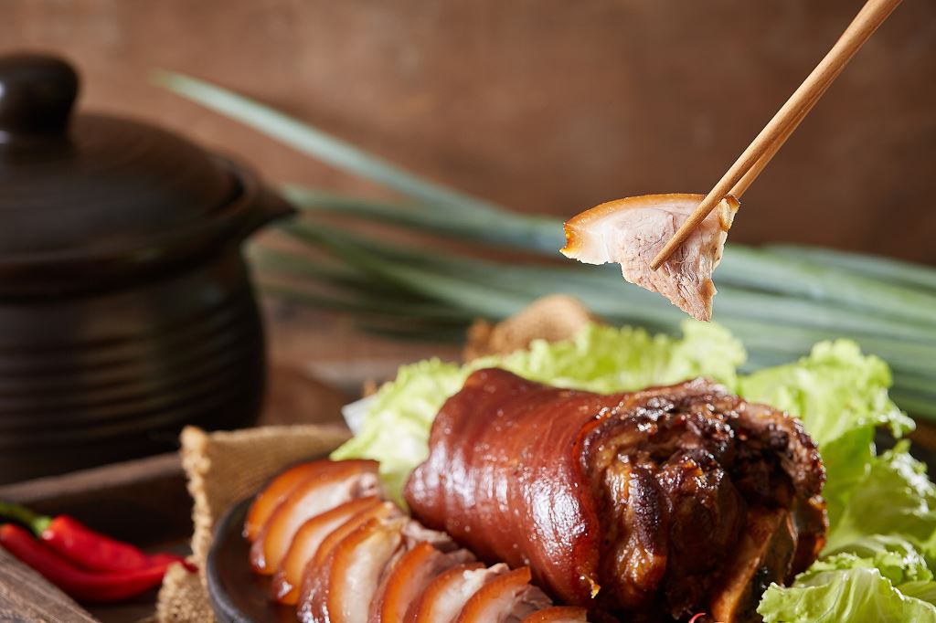 ◆獨門中藥配方製成,必嚐的獨特風味! ◆經兩小時慢火烹煮,搭配天然中藥配方、金門58高粱酒、紹興酒 ◆將醃漬液注入豬腳內部,讓它的酒香充分入味,再經過低溫冷藏醃漬長達72小時。