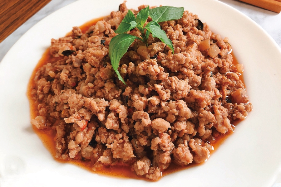 ◆微辣口味,簡單加熱拌飯、拌麵再煎顆荷包蛋🍳 ◆嚴選三久無毒豬有筋絞肉,肥瘦比3:7口感恰恰好 ◆用料在地新鮮九層塔,香味撲鼻 ◆精心調味:正宗泰國 100%零添加的魚露、有機素蠔油、新鮮的100%檸檬原汁、新鮮番茄丁、朝天椒